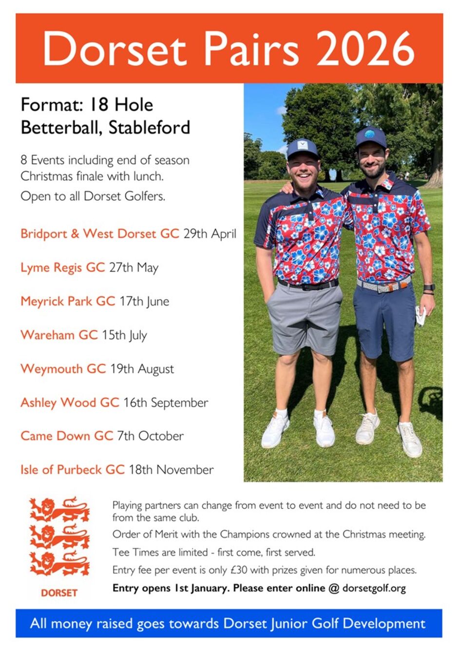 - The Dorset Pairs will be open to all male players, with no entry fee, who are members of a club affiliated to Dorset Golf.